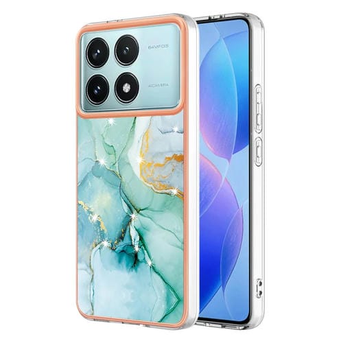 Funda para Teléfono con Revestimiento de Mármol Galvanizado de Doble Cara Imd para Xiaomi Poco F6 Pro 5G (Verde 003)