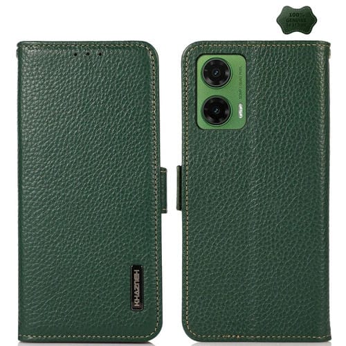 Funda para Teléfono Khazneh con Rfid Cuero Genuino Imán Lateral para Motorola Moto G35 (Verde)