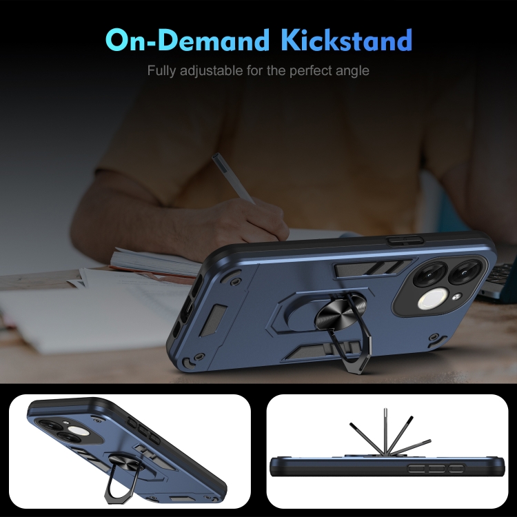 Funda para Teléfono Itel A80 con Soporte de Anillo de Metal y Protección a Prueba de Golpes (Azul)