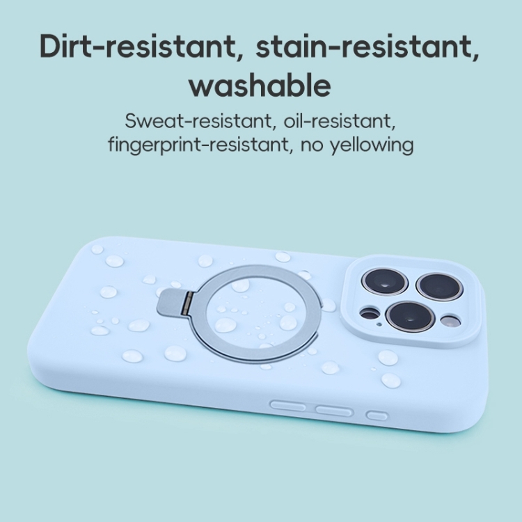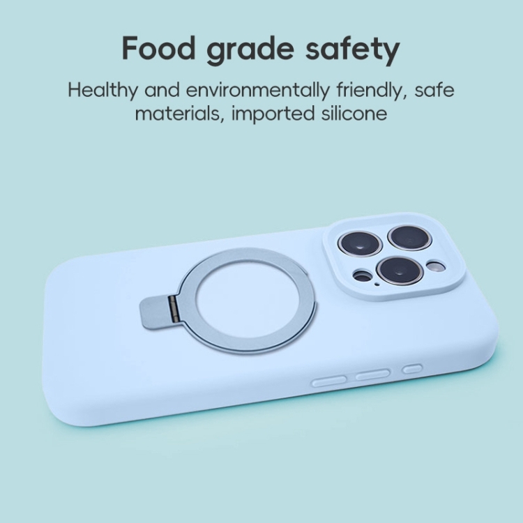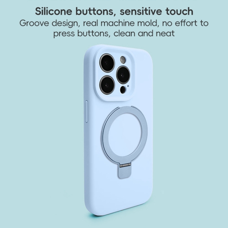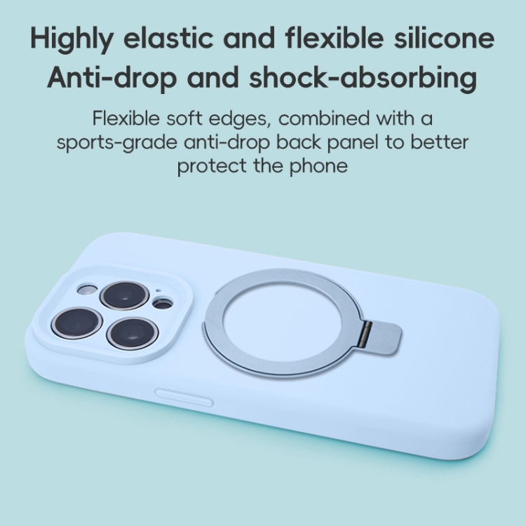 Funda para Teléfono con Soporte de Anillo de Metal Magsafe de Silicona Líquida para iPhone 16 Pro (Azul)