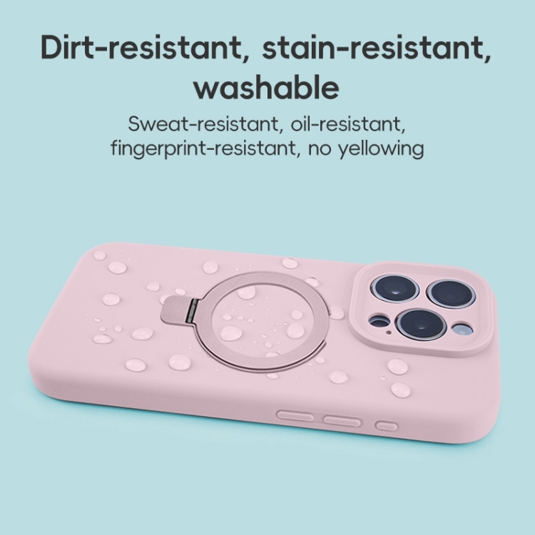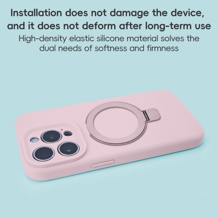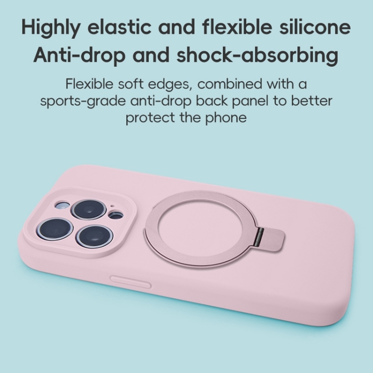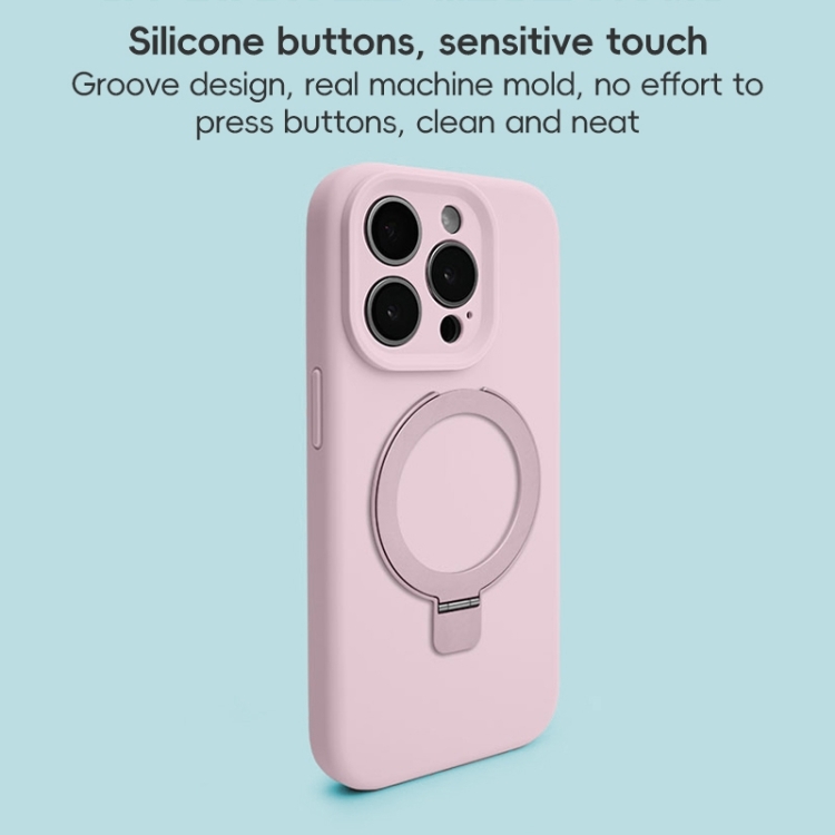 Funda para Teléfono iPhone 16 Pro con Soporte de Anillo de Metal Magsafe de Silicona Líquida (Rosa)