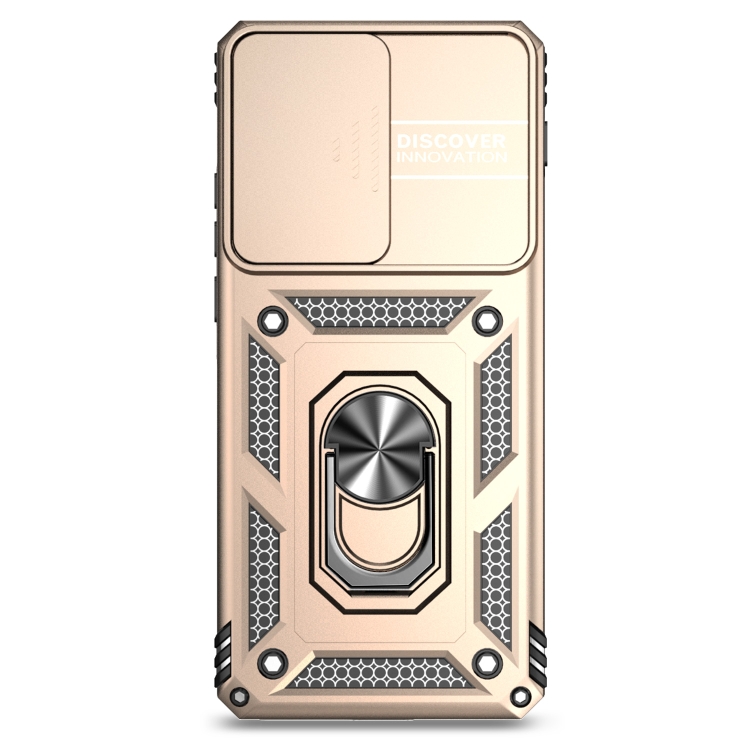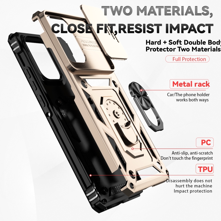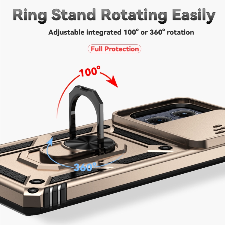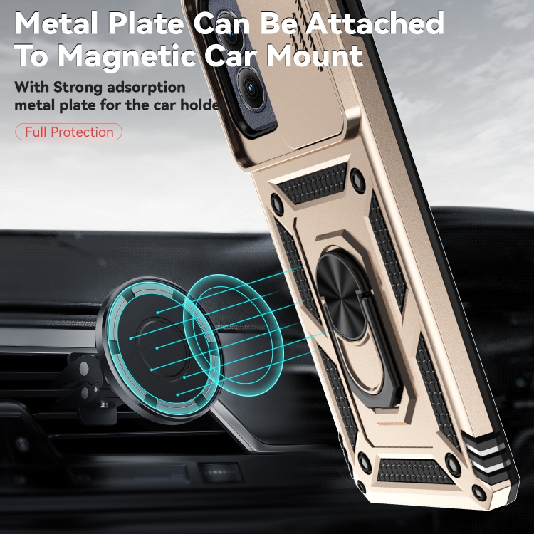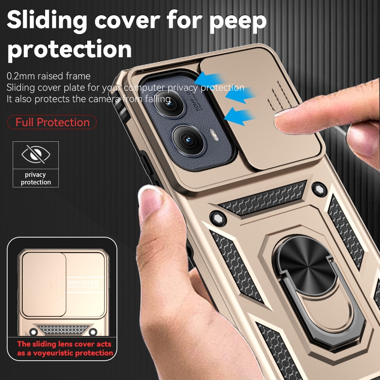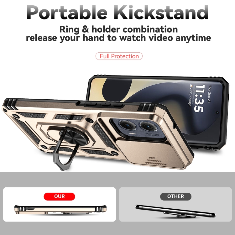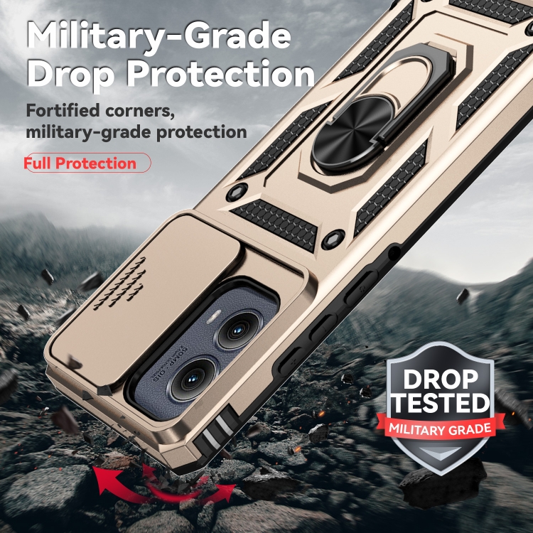 Funda para Teléfono Motorola Edge 5G 2024 con Soporte Deslizante y Protector de Pantalla (Dorada)