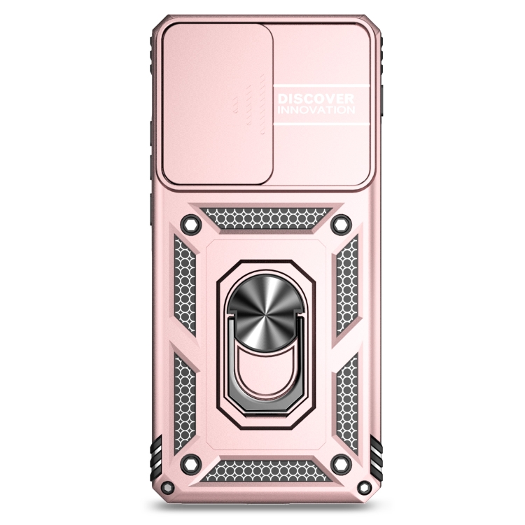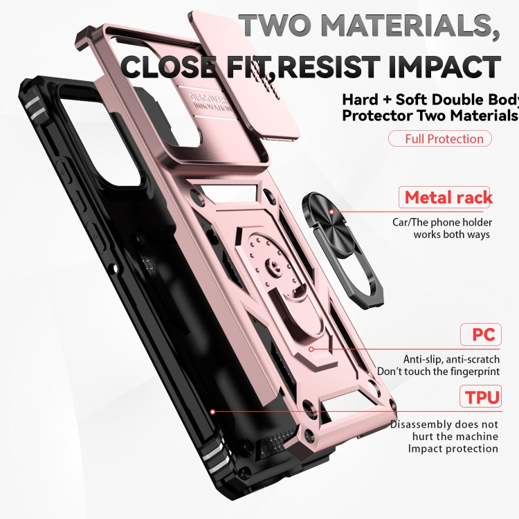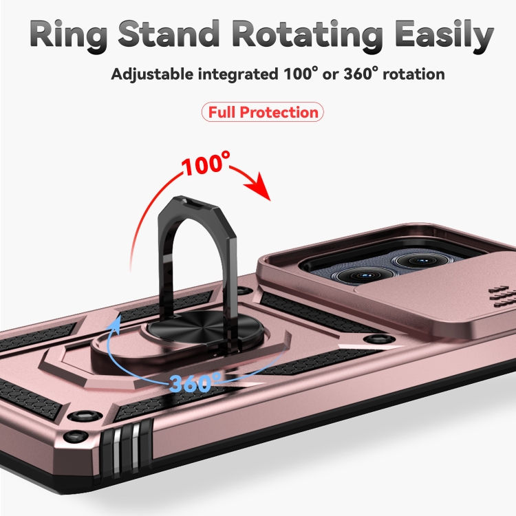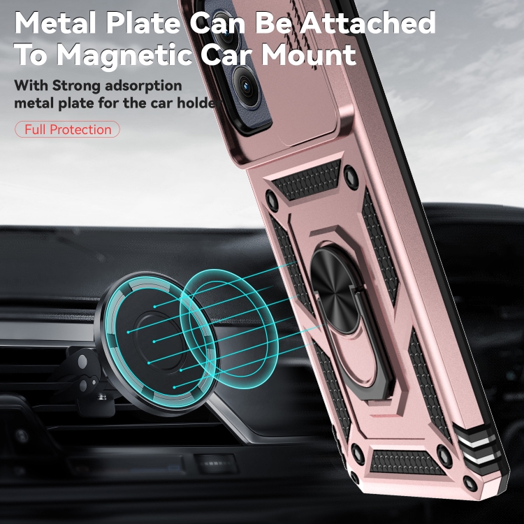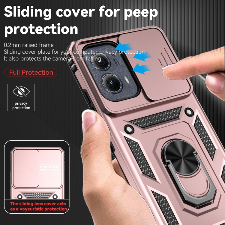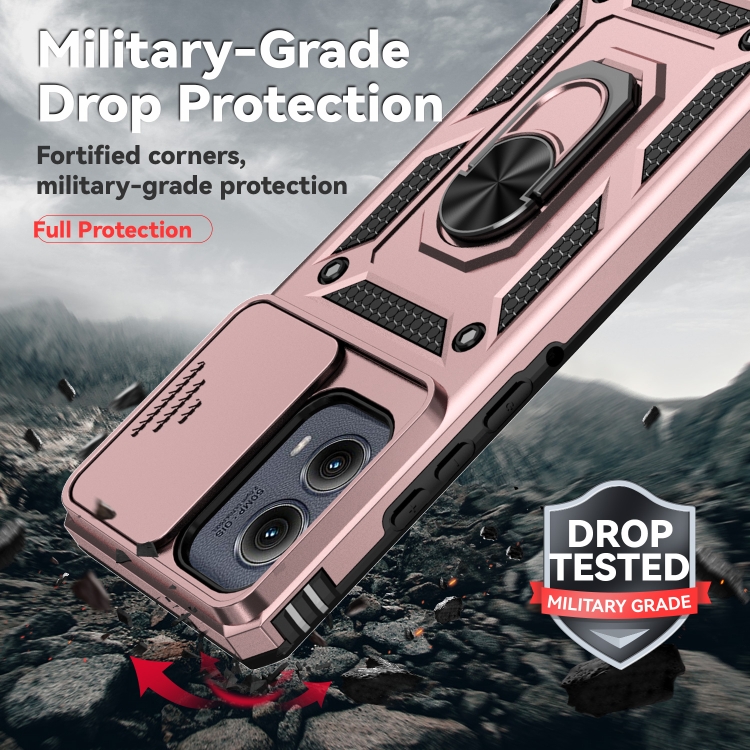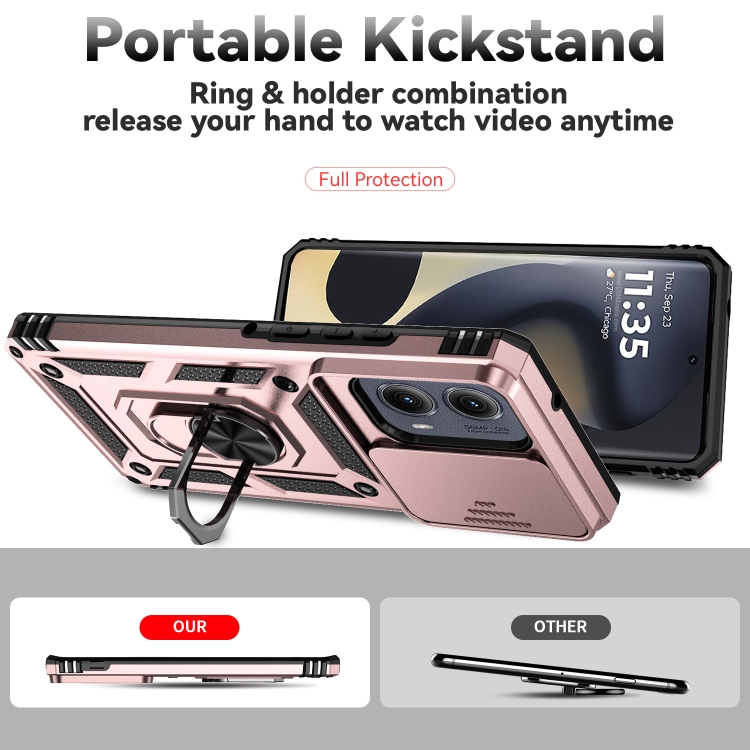Funda para Teléfono Motorola Edge 5G (2024) con Soporte Deslizante y Protector de Pantalla (Oro Rosa)