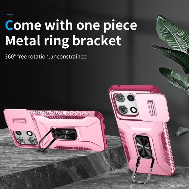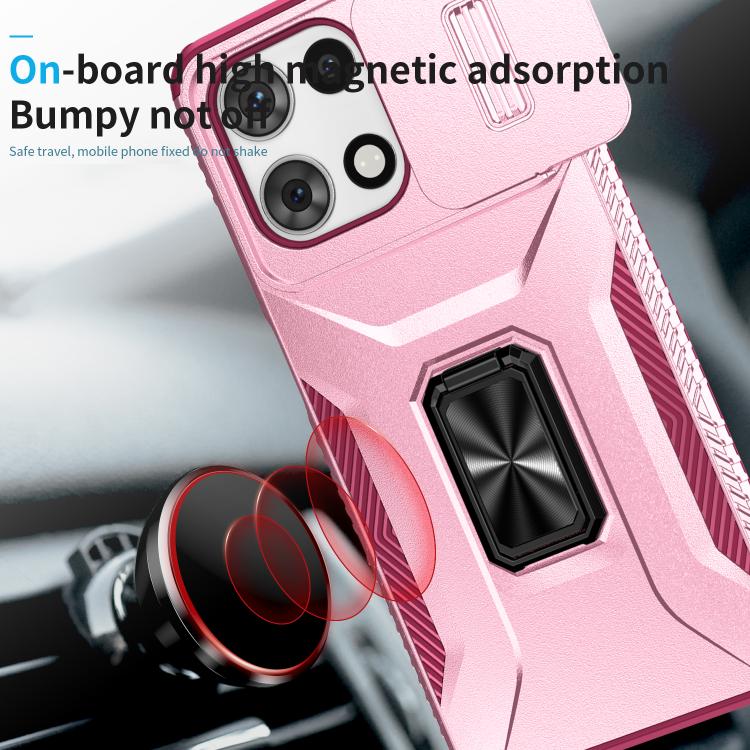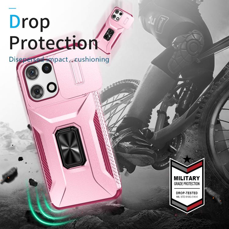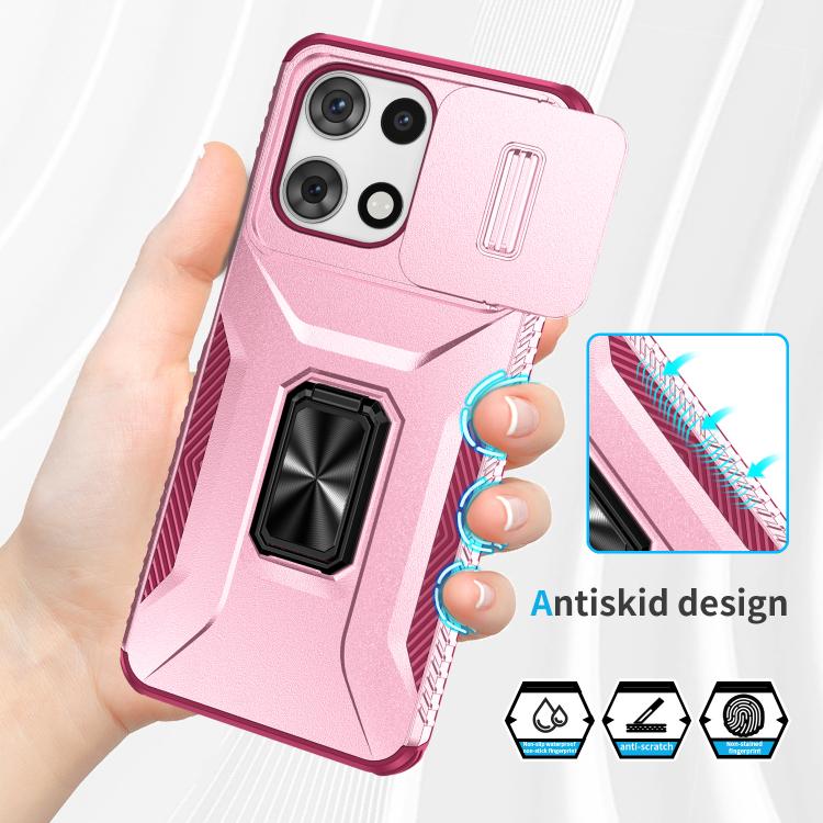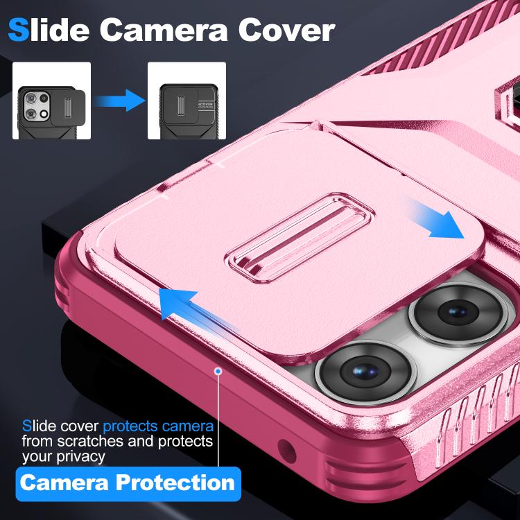 Funda para Teléfono Motorola Moto G 5G 2025 con Soporte Deslizante y Protector de Pantalla (Rosa + Rojo Rosa)