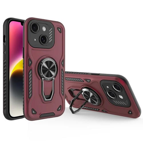 Funda para Teléfono con Soporte Giratorio de Metal TPU + PC Magnético para iPhone 14 (Rojo Oscuro)