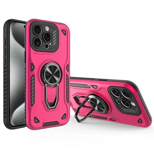 Funda para Teléfono TPU PC con Soporte Giratorio Metal Magnético para iPhone 15 Pro Max (Rosa Rojo)