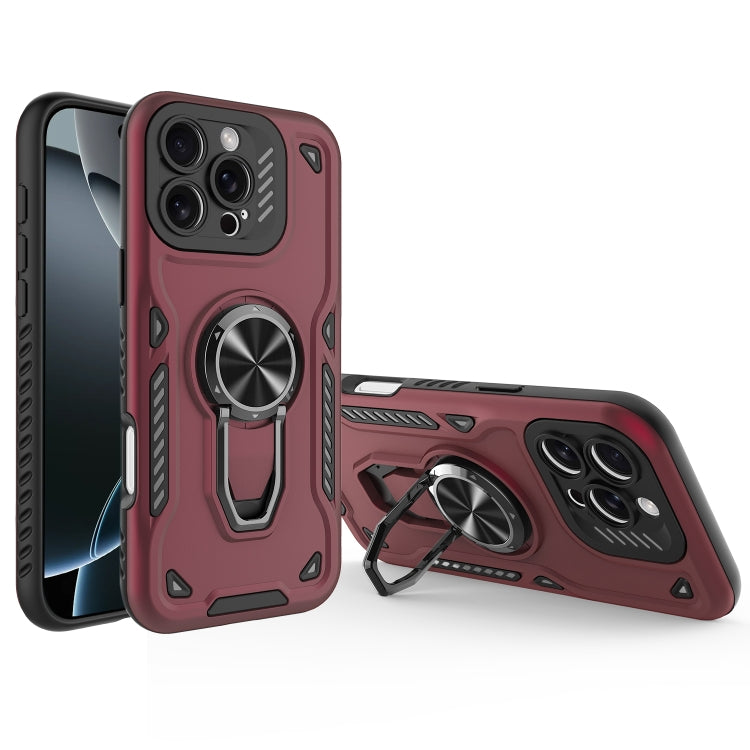 Funda para teléfono iPhone 16 Pro Max TPU + PC con soporte giratorio metálico (Rojo Oscuro)