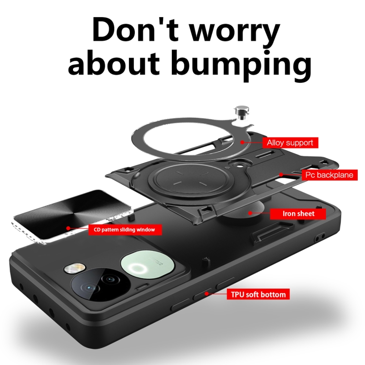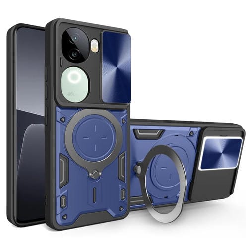 Funda para Teléfono con Soporte Magnético Deslizante con Textura de Cd para Vivo Iqoo Z9S 5G (Azul)