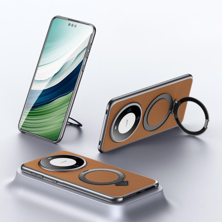 Funda para Teléfono Huawei Mate 60 con Soporte Magnético Magsafe de Cuero de Grano Superior (Marrón)