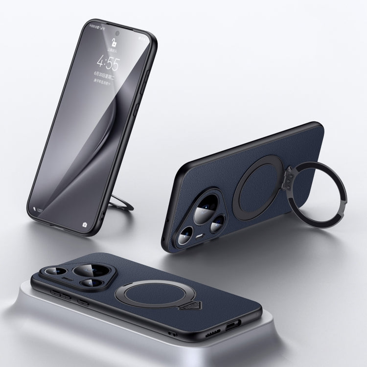 Funda para Teléfono Huawei Pura 70 con Soporte Magnético Magsafe de Cuero de Grano Superior (Azul)