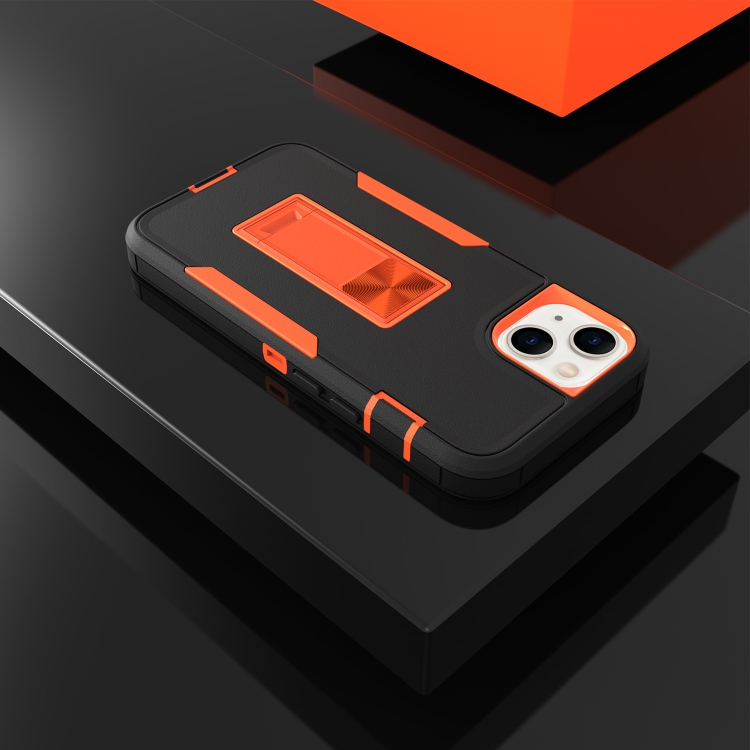Funda para Teléfono con Soporte Magnético iPhone 13 Mini (Negro + Naranja)