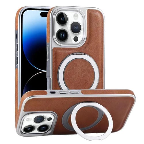 Funda para teléfono iPhone 14 Pro con soporte Magsafe giratorio de cuero granulado (Marrón)