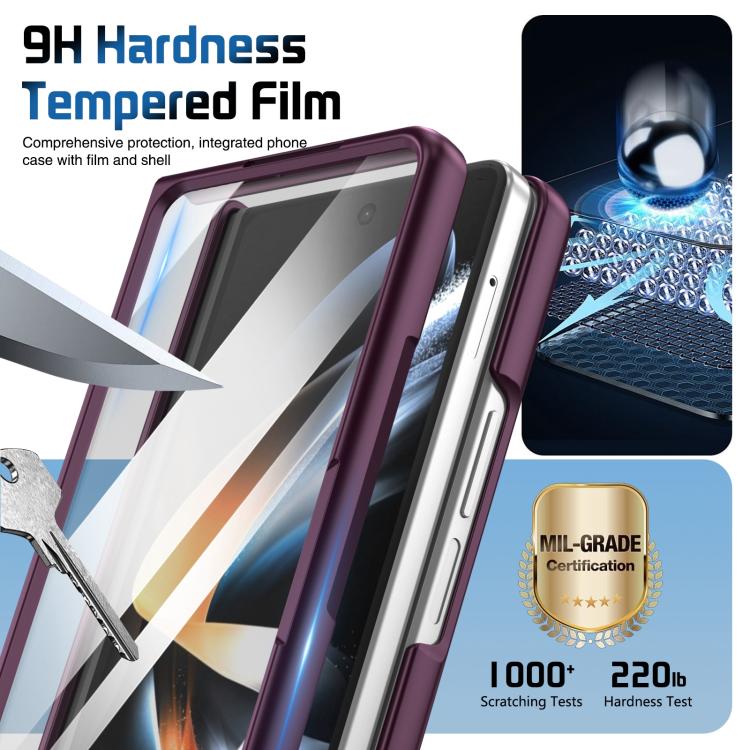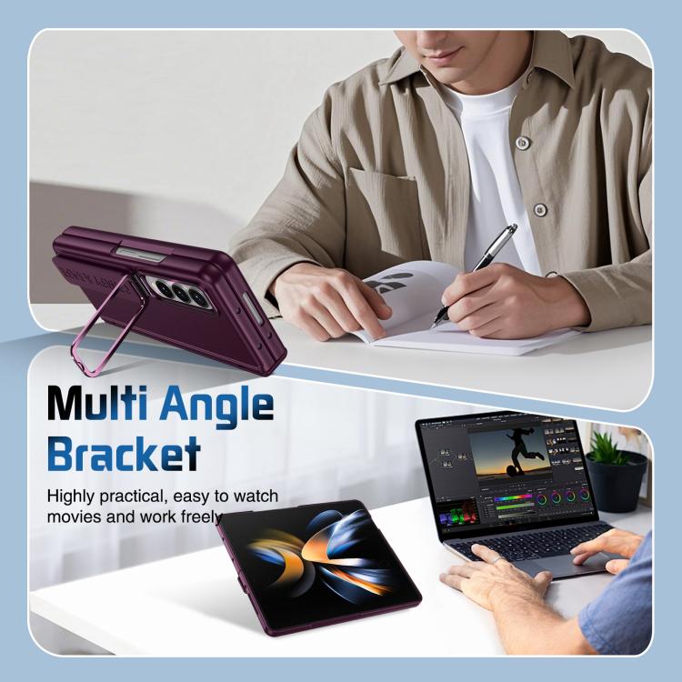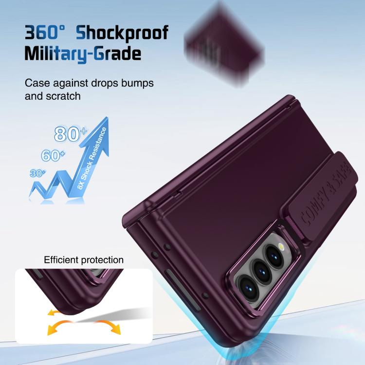 Funda para teléfono con soporte para lente integrada y correa para Samsung Galaxy Z Fold4 (rojo vino)