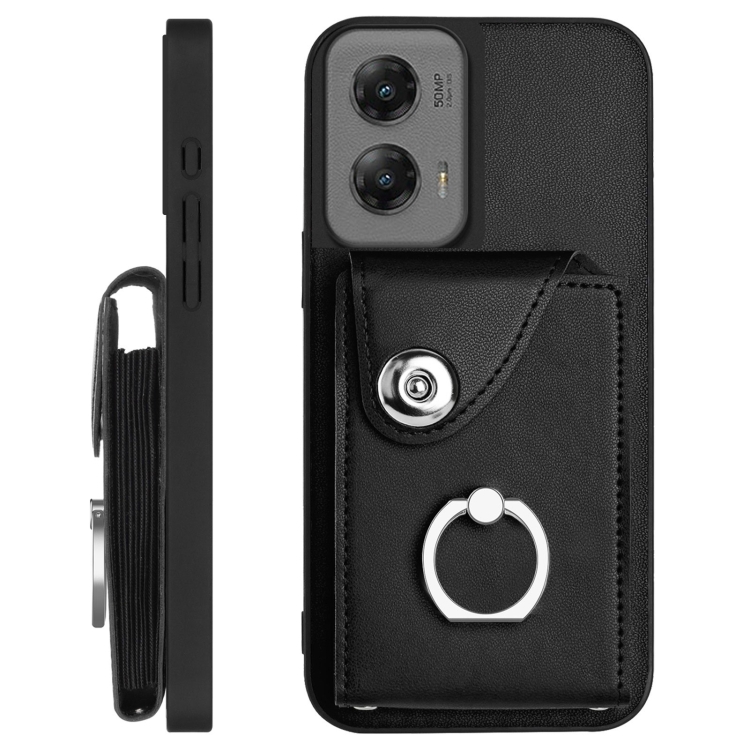 Funda para Motorola Moto G Stylus 5G (2024) con Soporte Tarjetas Anillo y Cordón Largo (Negro)
