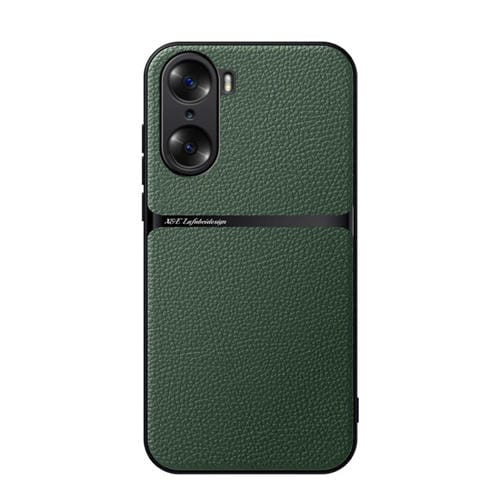 Funda para Teléfono Honor 60 con Tapa Magnética de Cuero de Lichi a Prueba de Golpes (Verde)