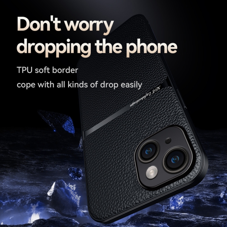Funda para Teléfono iPhone 15 Plus con Tapa Magnética de Piel de Lichi a Prueba de Golpes (Azul Marino)