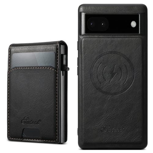 Funda para Teléfono Suteni H19 Oil Wax 2 En 1 Magsafe para Google Pixel 6A con Tapa Extraíble, Ranuras para Tarjetas y Función Atril (Negra)