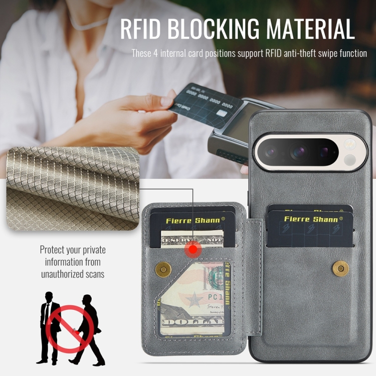 Funda para Teléfono Fierre Shann con Tarjetero Cuero de Vaca con Cera para Google Pixel 9/9 Pro (Gris)