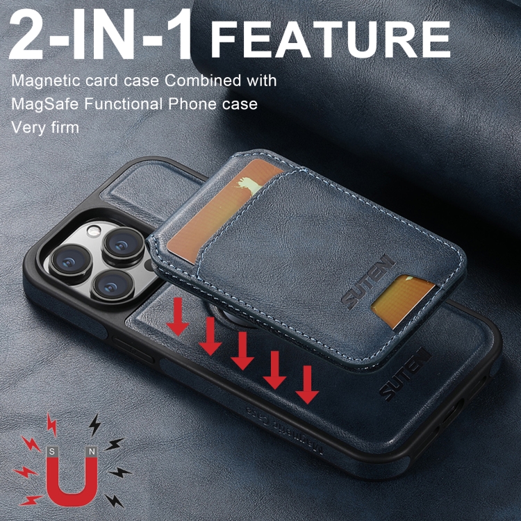 Funda para Teléfono Suteni M2 Oil Wax con Tarjetero Horizontal Magsafe para iPhone 16 Pro Max (Azul)