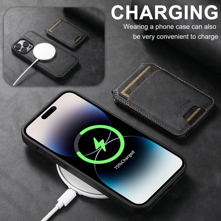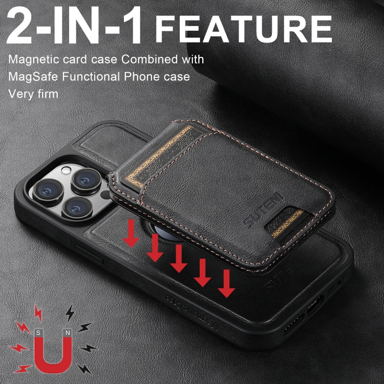 Funda para Teléfono Suteni M2 Oil Wax con Tarjetero Horizontal Magsafe para iPhone 16 Pro (Negra)