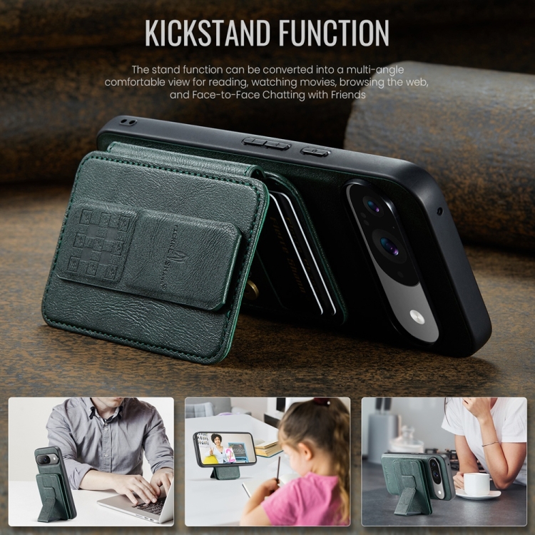 Funda para Teléfono Fierre Shann con Tarjetero Magnético y Tapa Horizontal de Piel para Google Pixel 9/9 Pro (Verde)