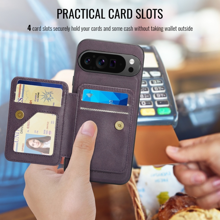 Funda para Teléfono Fierre Shann con Tarjetero Magnético y Tapa Horizontal para Google Pixel 9 Pro XL (Morado)
