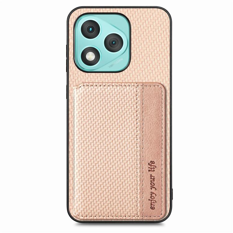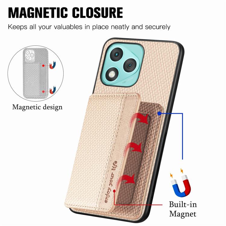 Funda para teléfono con tarjetero magnético de fibra de carbono para Honor 400 Lite (caqui)