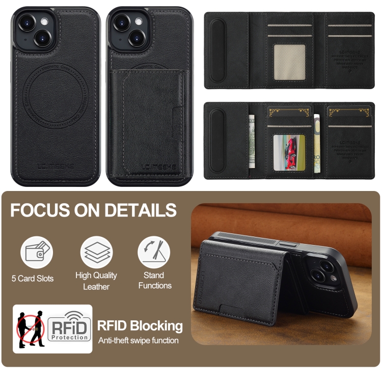 Funda para Teléfono Lc.Imeeke Serie L5 con Tarjetero Rfid Desmontable Magsafe para iPhone 15 Plus/14 Plus (Negra)