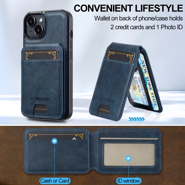 Funda para Teléfono Lc.Imeeke Serie L3 con Tarjetero Rfid Desmontable y Magsafe para iPhone 15 Plus/14 Plus (Azul)