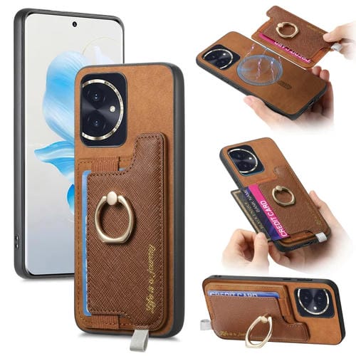 Funda para Teléfono Honor 100 con Tarjetero y Anillo de Cuero Diseño Retro Magsafe (Marrón)
