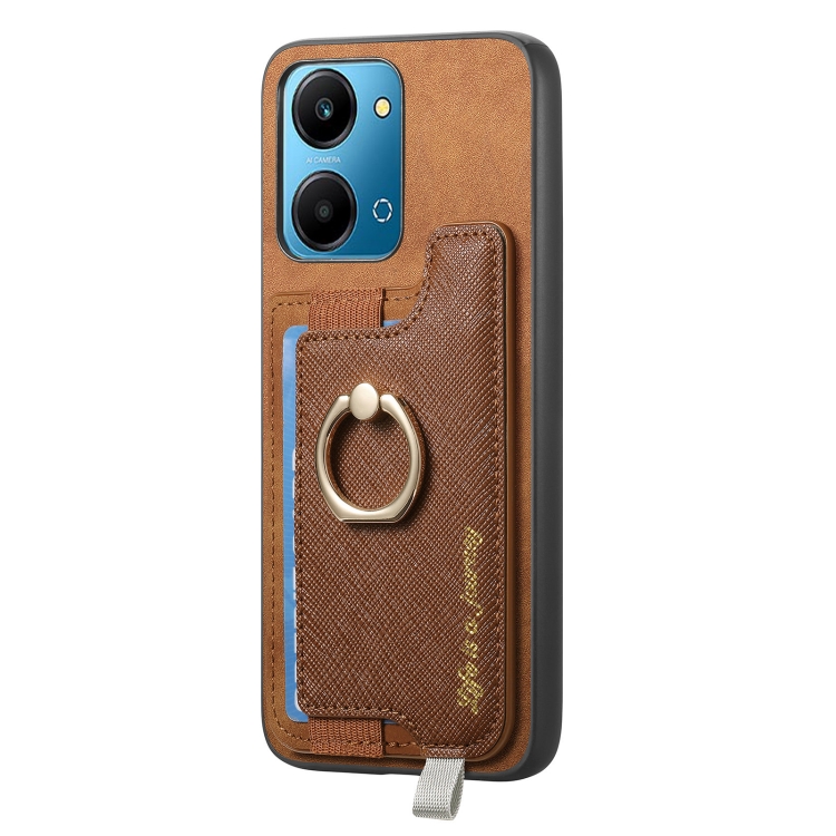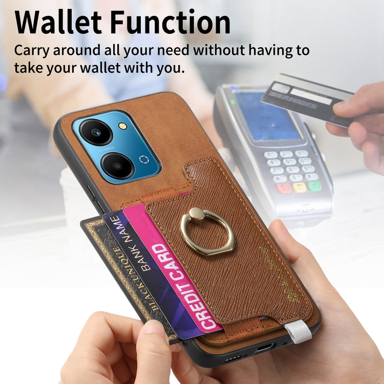 Funda para Teléfono con Tarjetero y Anillo de Cuero Retro Magsafe Cross para Honor 90 GT 5G (Marrón)