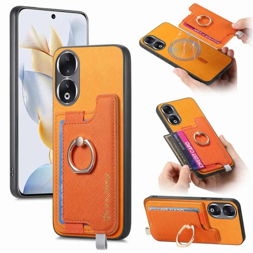 Funda para Teléfono Honor 90 Pro 5G con Tarjetero y Anillo de Cuero Retro Magsafe (Amarillo)