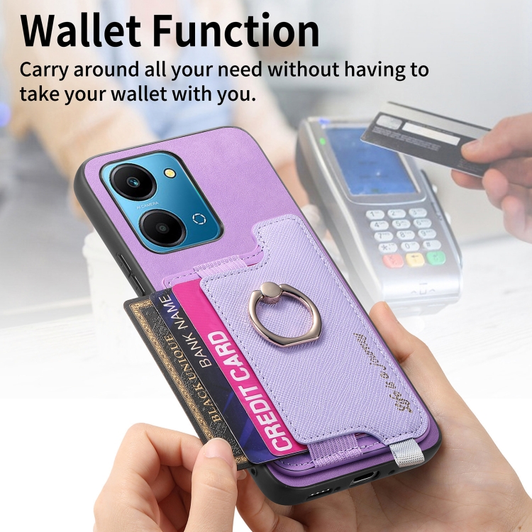 Funda para Teléfono Honor X50I+ con Tarjetero y Anillo Cuero Diseño Retro Magsafe (Morado)