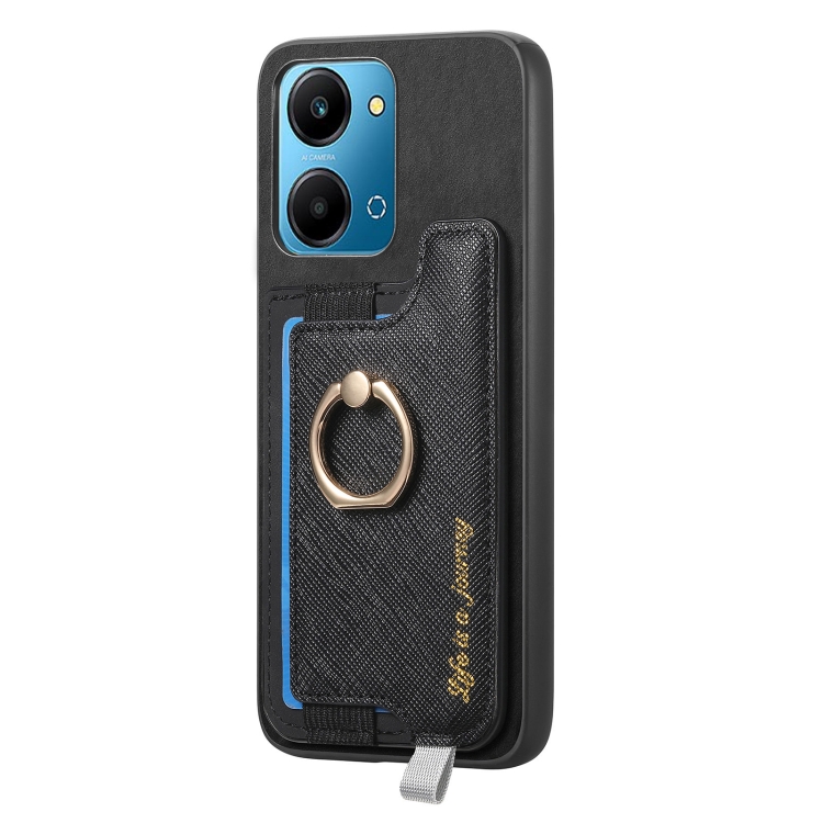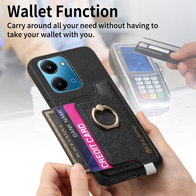 Funda para Teléfono Honor X50I con Tarjetero y Anillo de Cuero Magsafe Cross (Negro)