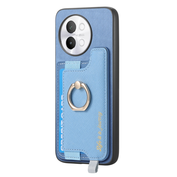 Funda para Teléfono con TaRJetero y Anillo de Cuero con Diseño Retro Magsafe Cross para Vivo Iqoo 11 Pro 5G (Azul)