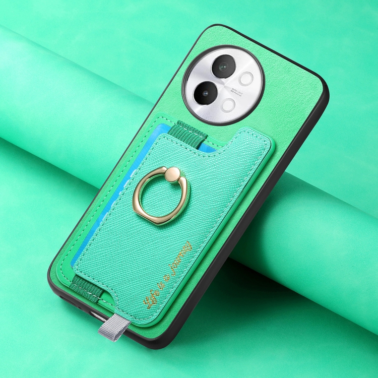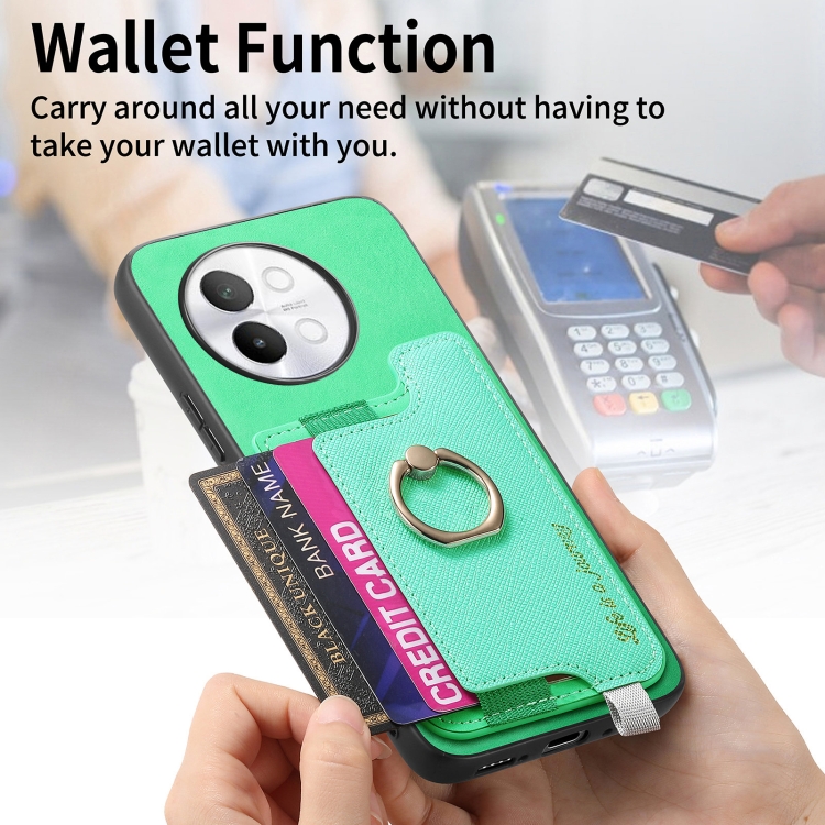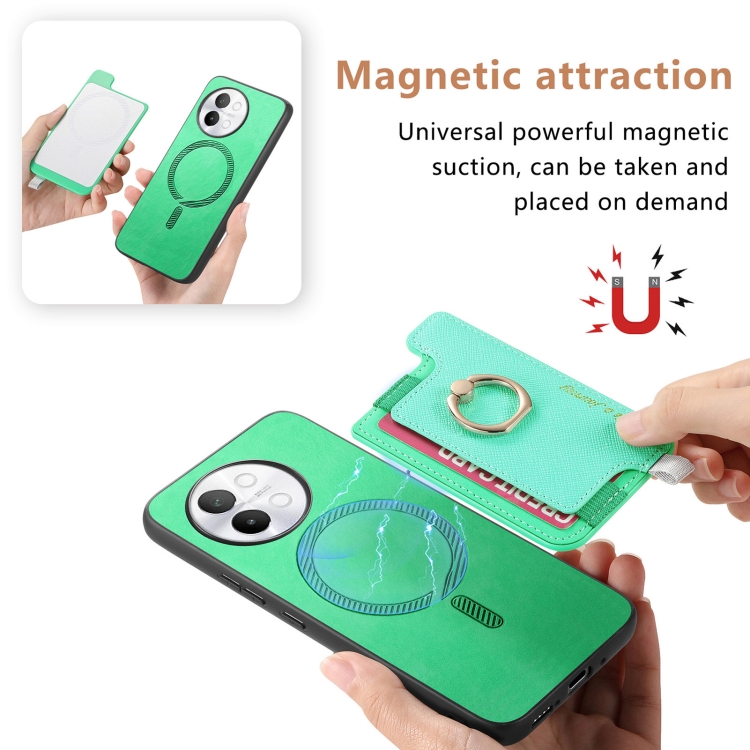 Funda para Teléfono con TaRJetero y Anillo de Cuero con Diseño Retro Magsafe Cross para Vivo Iqoo 11 Pro 5G (Verde)
