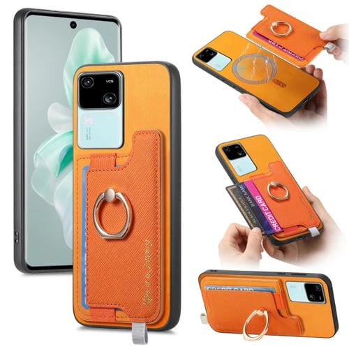 Funda para Teléfono con TaRJetero y Anillo de Cuero con Diseño Retro Magsafe Cross para Vivo S18/S18 Pro 5G (Amarillo)