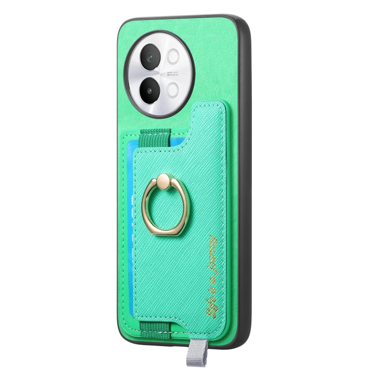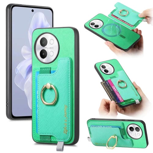 Funda para Teléfono con TaRJetero y Anillo de Cuero con Diseño Retro Magsafe Cross para Vivo S18E 5G (Verde)