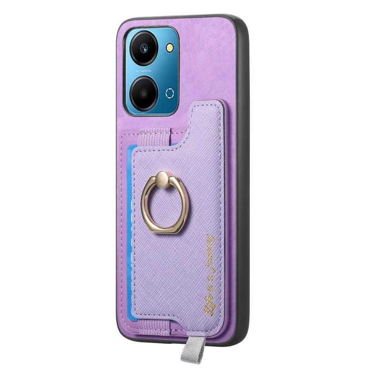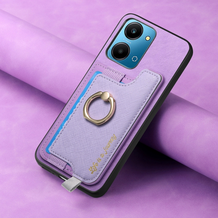 Funda para Teléfono Honor X7B Play 8T 5G con Tarjetero Anillo Cuero Retro Magsafe (Morado)