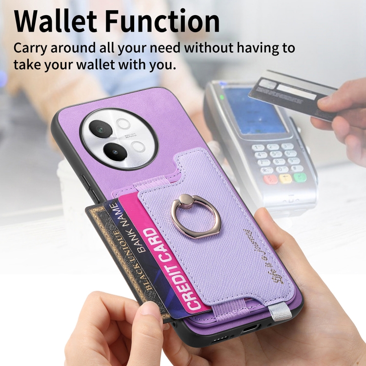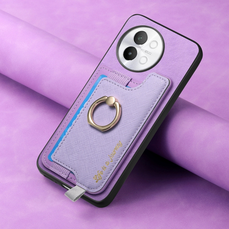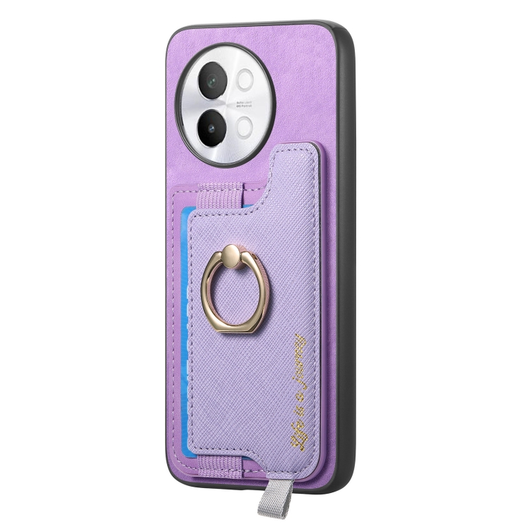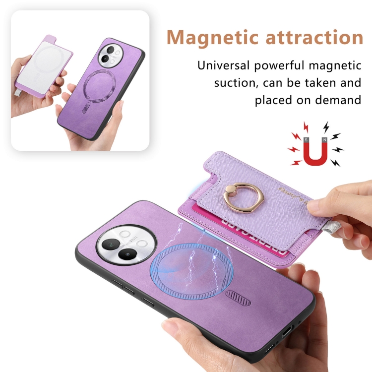 Funda para Teléfono con TaRJetero y Anillo de Cuero con Diseño Retro Magsafe para Vivo Iqoo 11 Pro 5G (Morado)