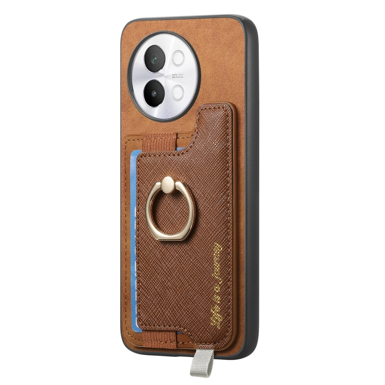 Funda para Teléfono con TaRJetero y Anillo de Cuero con Diseño Retro Magsafe para Vivo S17E / Iqoo Z7 Pro / T2 Pro (Marrón)