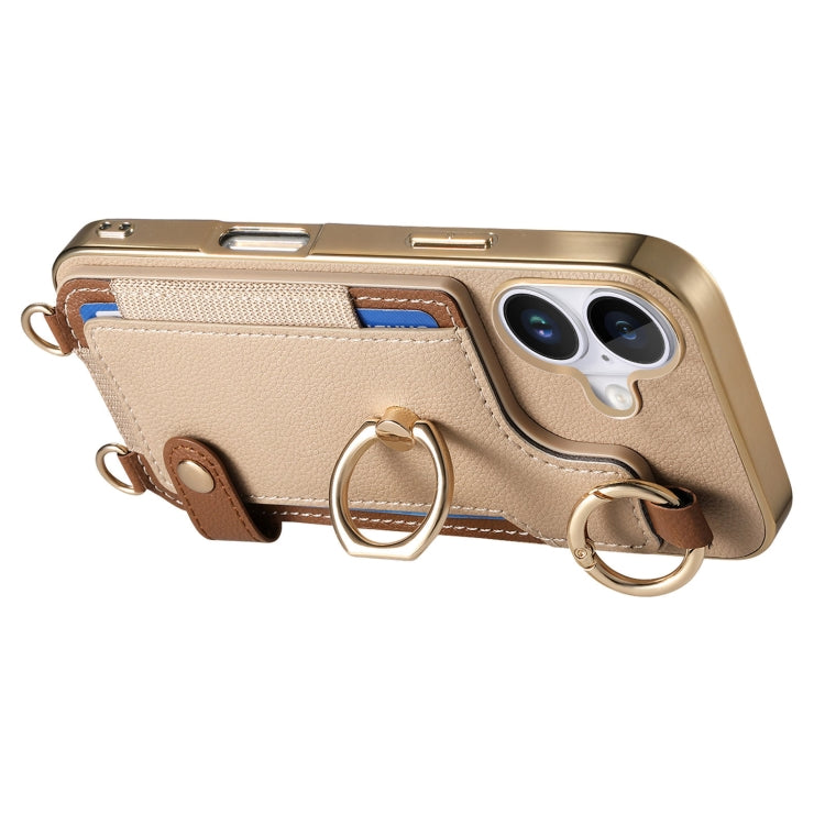 Funda para Teléfono iPhone 16 con Tarjetero Anillo y Lazo para Colgar (Caqui)