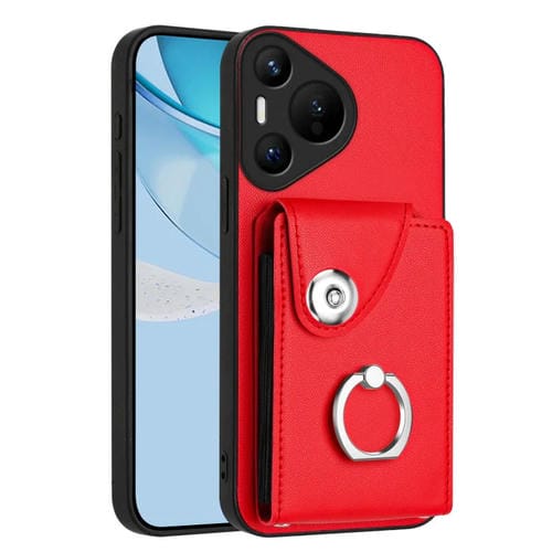 Funda para Teléfono Huawei Pura 70 con Tarjetero y Anillo (Roja)