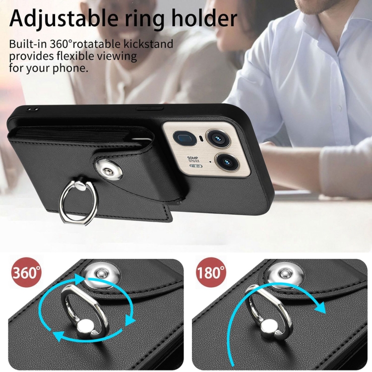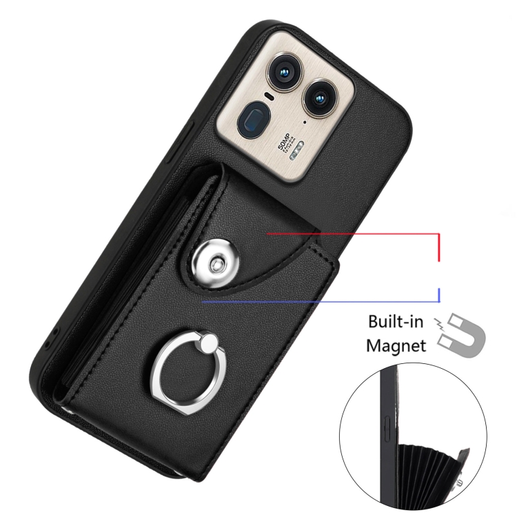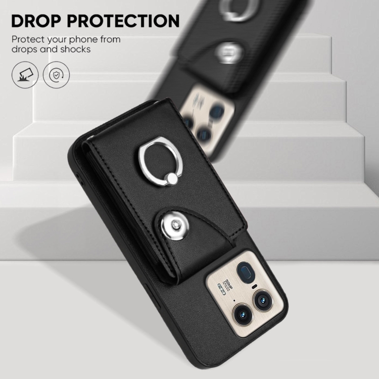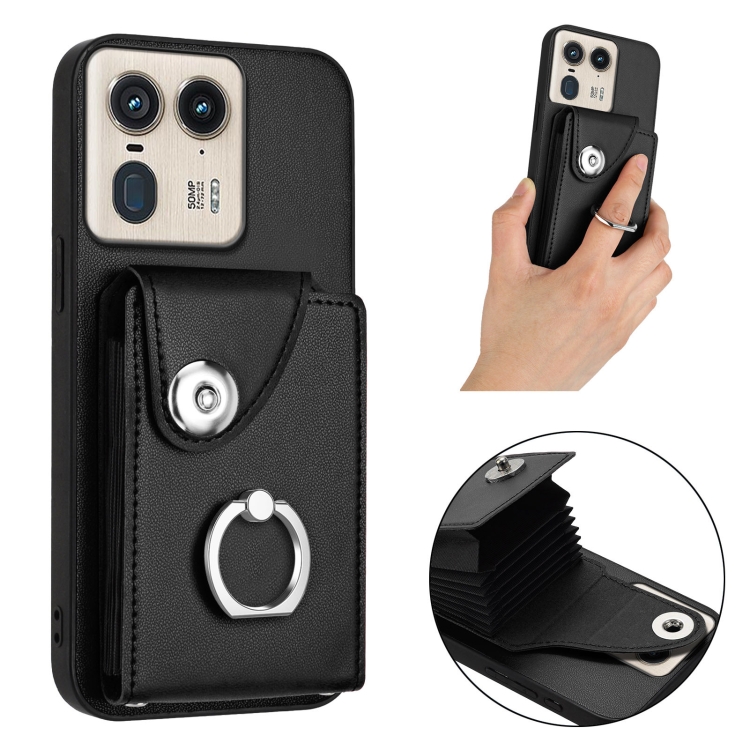 Funda para Teléfono Motorola Edge 50 Ultra con Tarjetero y Anillo (Negro) Versión UE