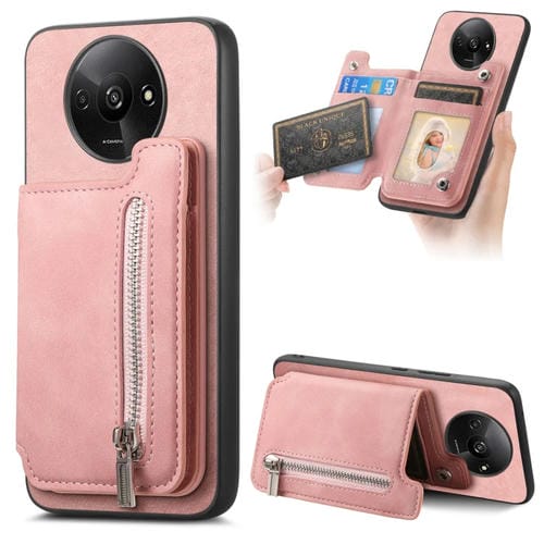 Funda para Teléfono con TaRJetero y Cremallera Magsafe Retro para Redmi A3 (Rosa)