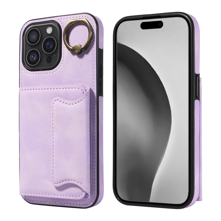 Funda para Teléfono iPhone 16 Pro Max con Tarjetero y Hebilla de Anilla (Morado)