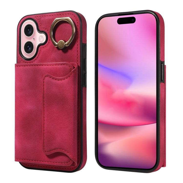 Funda para Teléfono iPhone 16 con Tarjetero y Hebilla de Anilla (Roja)