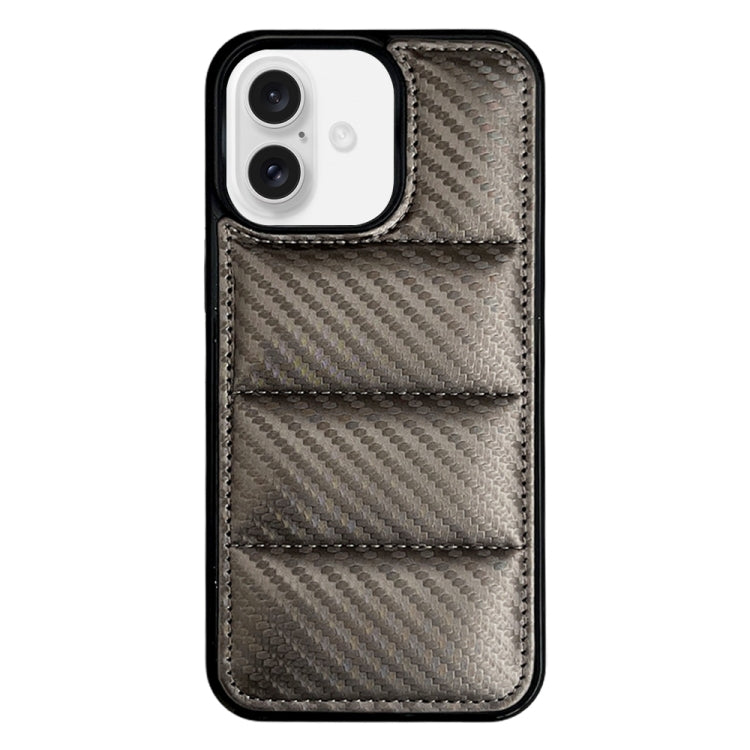 Funda para Teléfono iPhone 16 Textura Fibra de Carbono y Plumón (Gris)