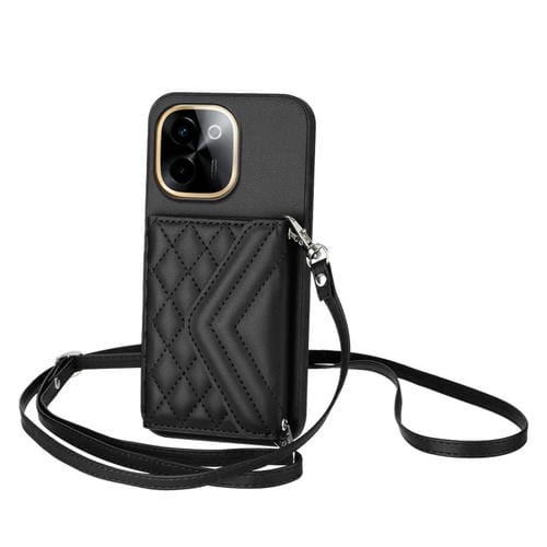 Funda para Teléfono con Textura Rombal y TaRJetero Rfid con Cordón Largo para Vivo Y200 (Negro)