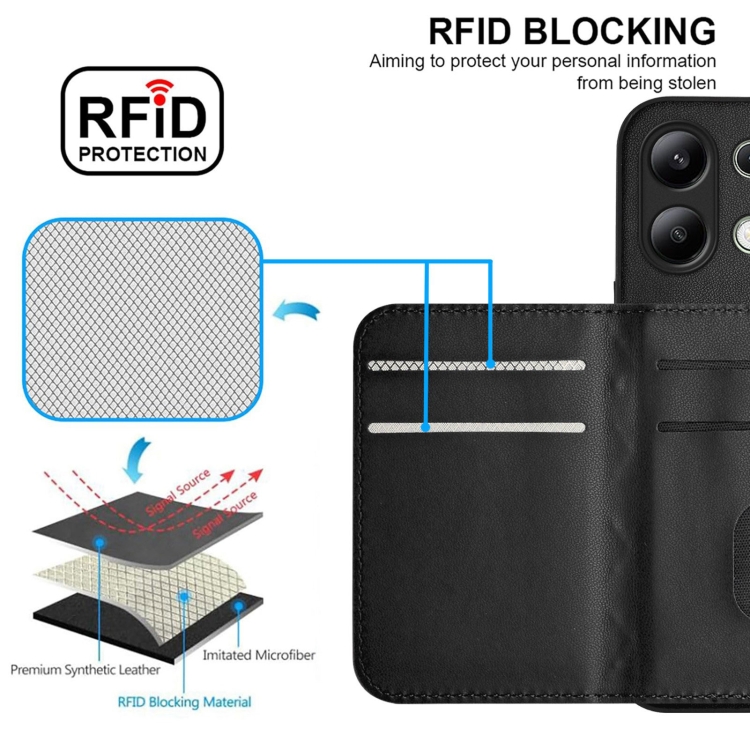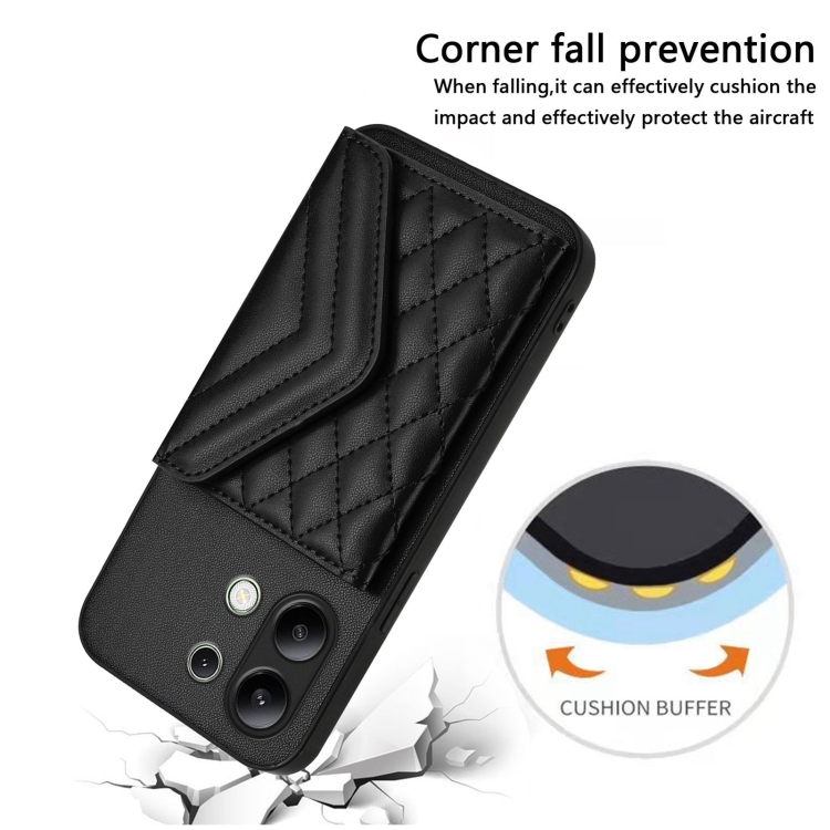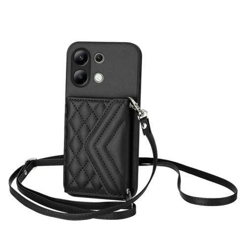 Funda para Teléfono con Textura Rómbica Global y Rfid para Redmi Note 13 4G con Cordón Largo (Negro)